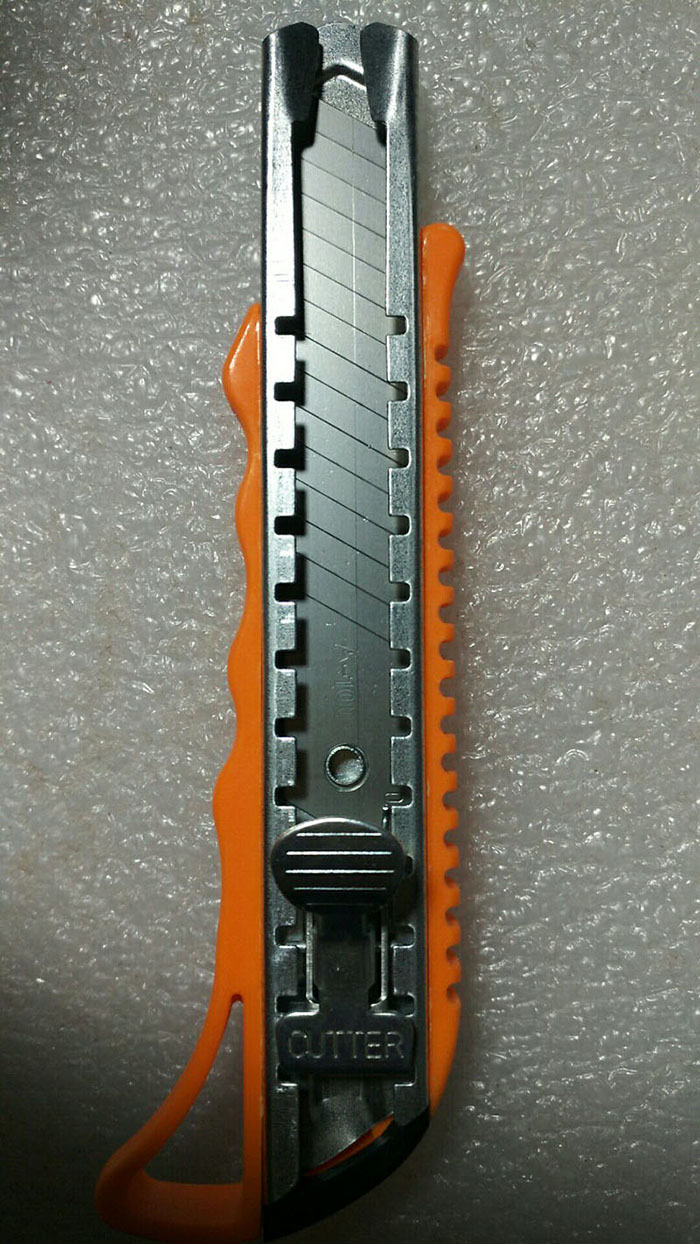美工刀也俗称刻刀或壁纸刀,是一种美术和做手工艺品的刀,首要用来切开质地柔软的东西,(例如:薄合板,塑料,纸质成品,纸箱等)多为塑刀柄和刀片两有些构成,为抽拉式构造。也有为金属刀柄,刀片多为斜口,用钝可顺片身的划线折断,呈现新的刀锋,方便使用。美工刀有大...